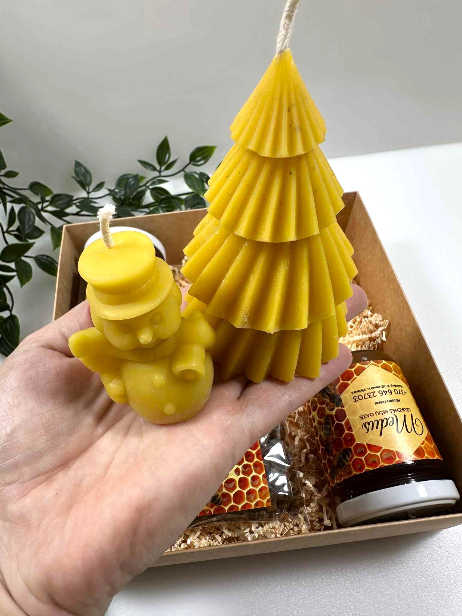 • 2 vnt rankų darbo žvakių  iš bičių vaško – „Eglutė”ir „sniego senis”,
